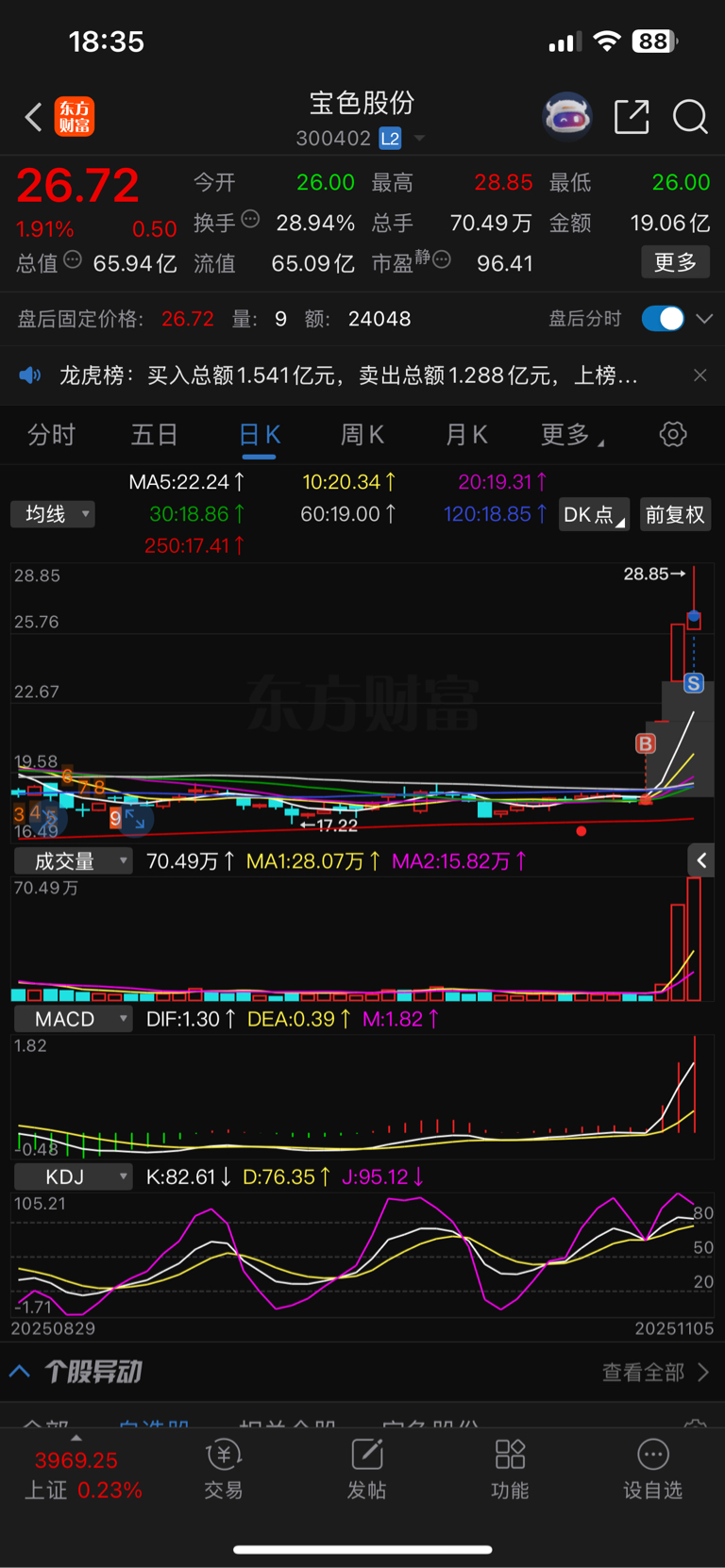 $宝色股份(SZ300402)$ 我先撤了希望里面的朋友能继续赚