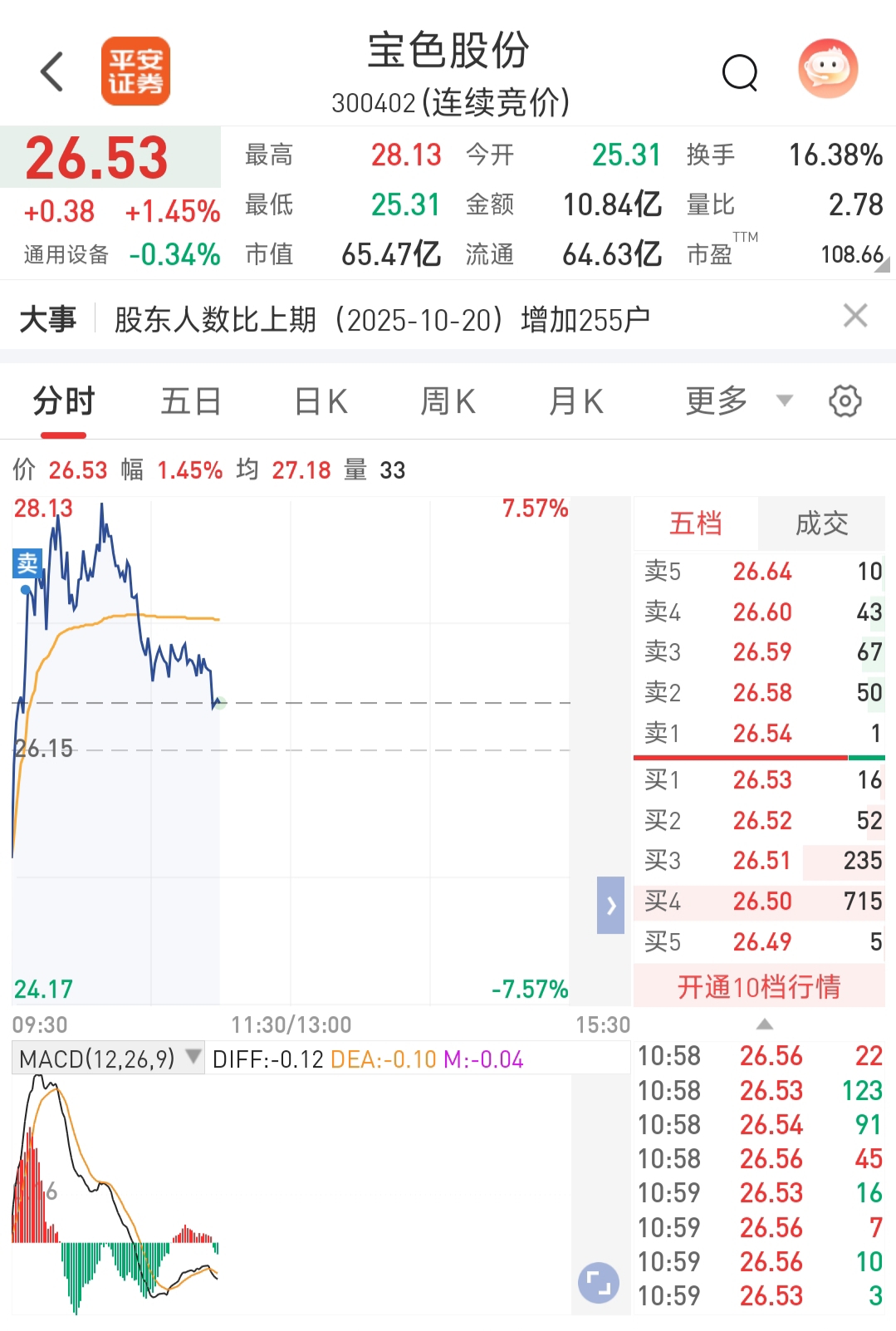 $宝色股份(SZ300402)$ 早上看上冲,就挂单了,刚挂就成交了,正准备再追回来,我惹today,突然一个电话来了,打完就这样了,是不是赚了