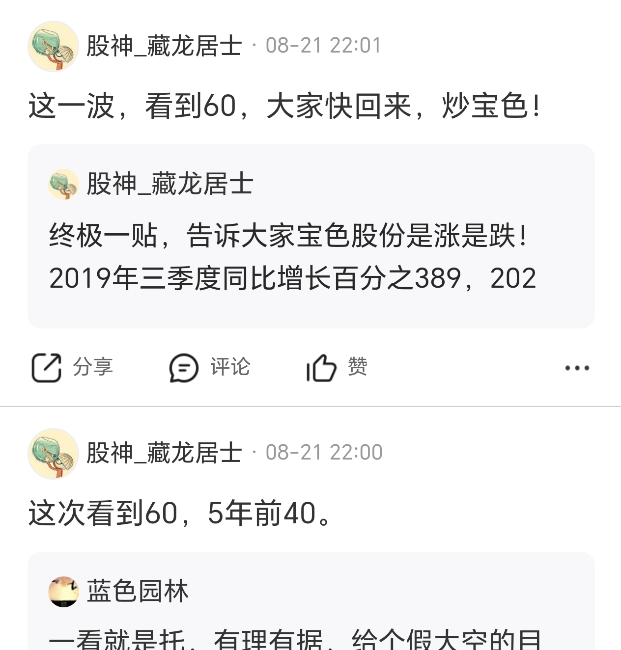 郑重声明:用户在财富号/股吧/博客等社区发表的所有信息(包括但不限于文字、视频、音频、数据及图表)仅代表个人观点,与本网站立场无关,不对您构成任何投资建议,据此操作风险自担。请勿相信代客理财、免费荐股和炒股培训等宣传内容,远离非法证券活动。请勿添加发言用户的手机号码、公众号、微博、微信及QQ等信息,谨防上当受骗!