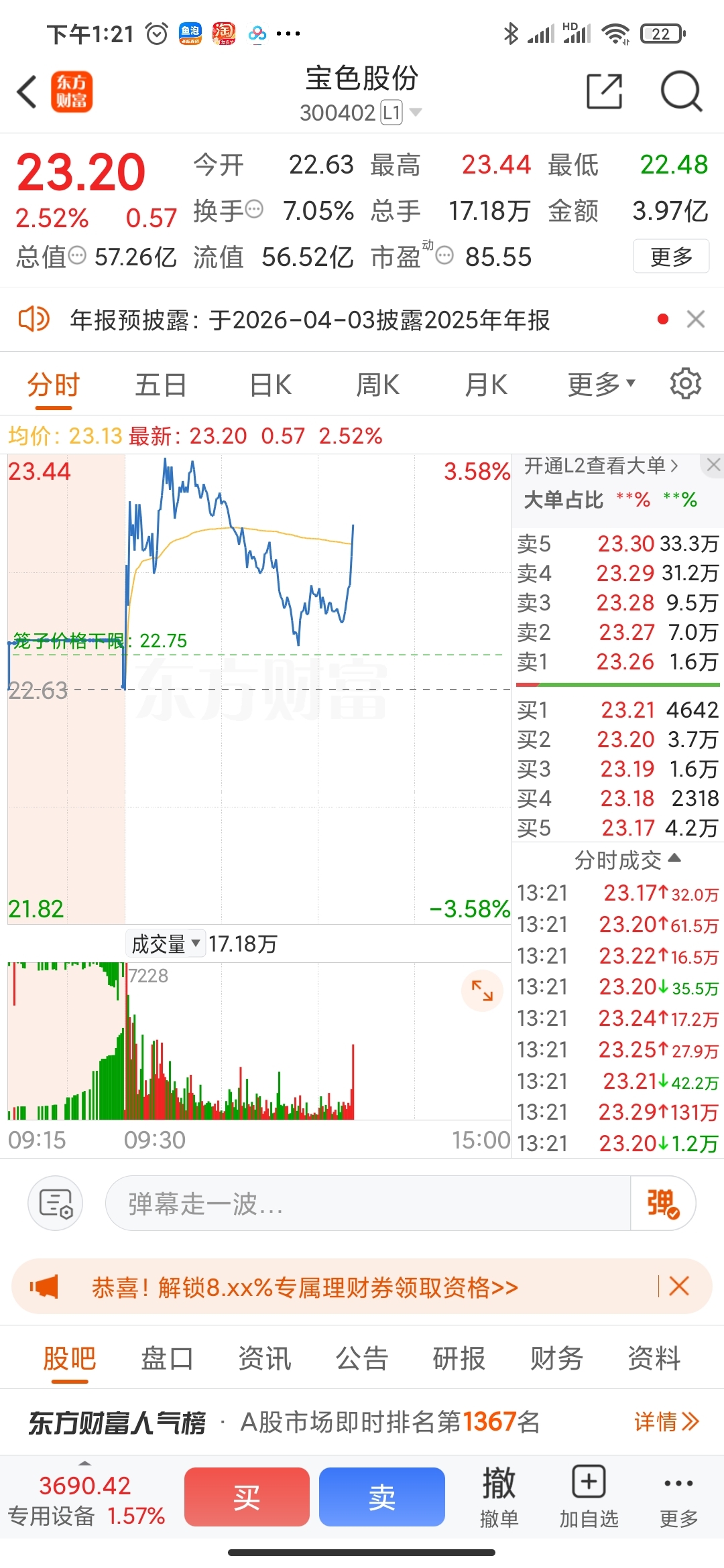 $宝色股份(SZ300402)$