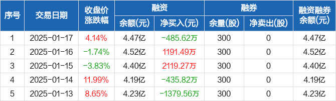 汉宇集团:融资净偿还485.62万元,融资余额4.47亿元(01-17)