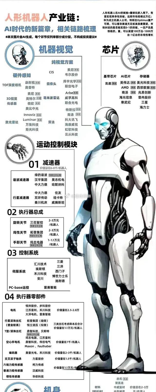 以上列表结合了最新的搜索结果,涵盖了人形机器人产业链中的核心零部件、传感器、控制系统、本体制造等多个环节。