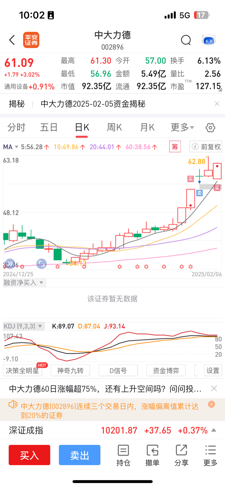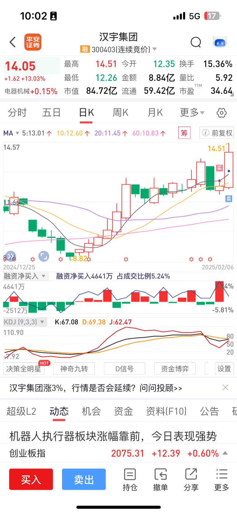 昨天进了汉宇,今早止盈出了,再次回到中大