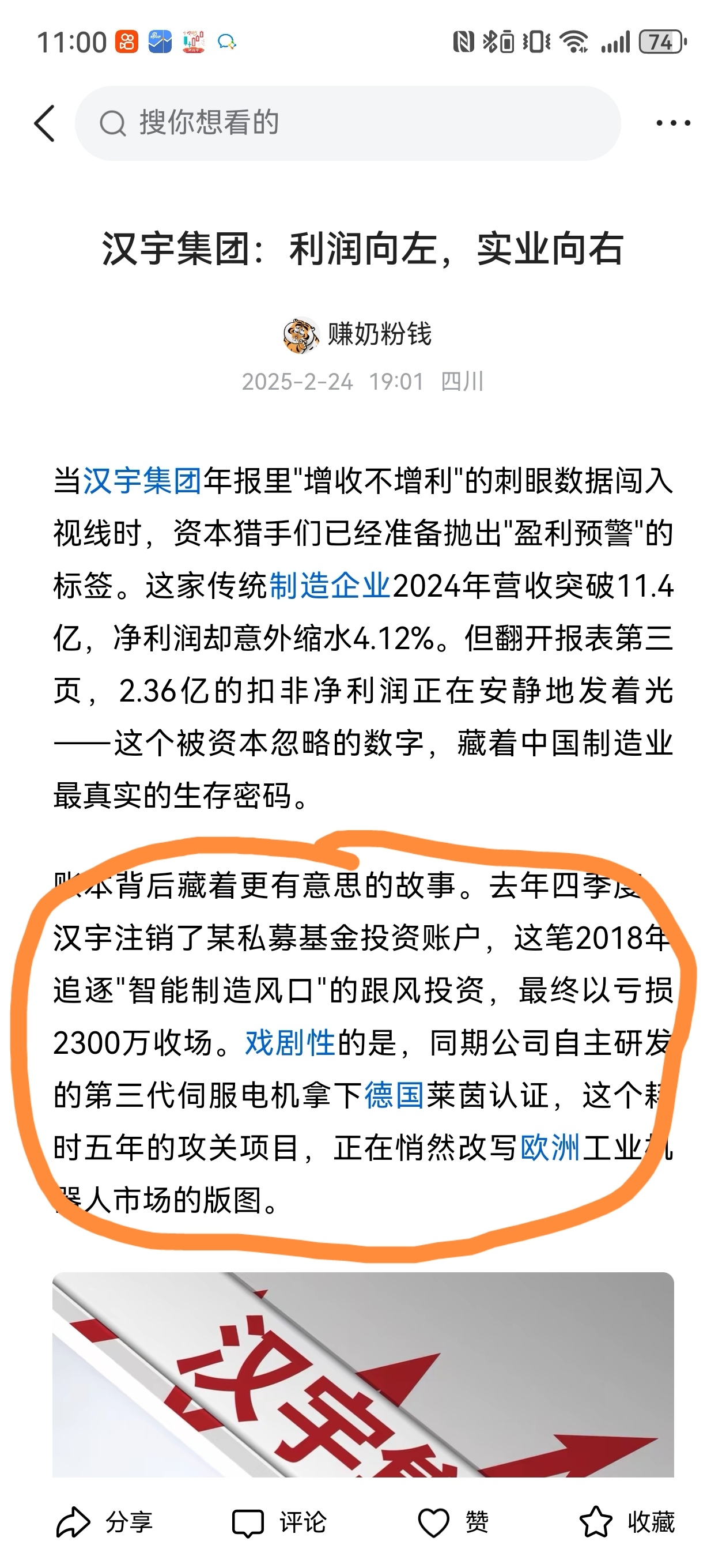 汉宇业绩属实算优良啦!在机器人板块里边。