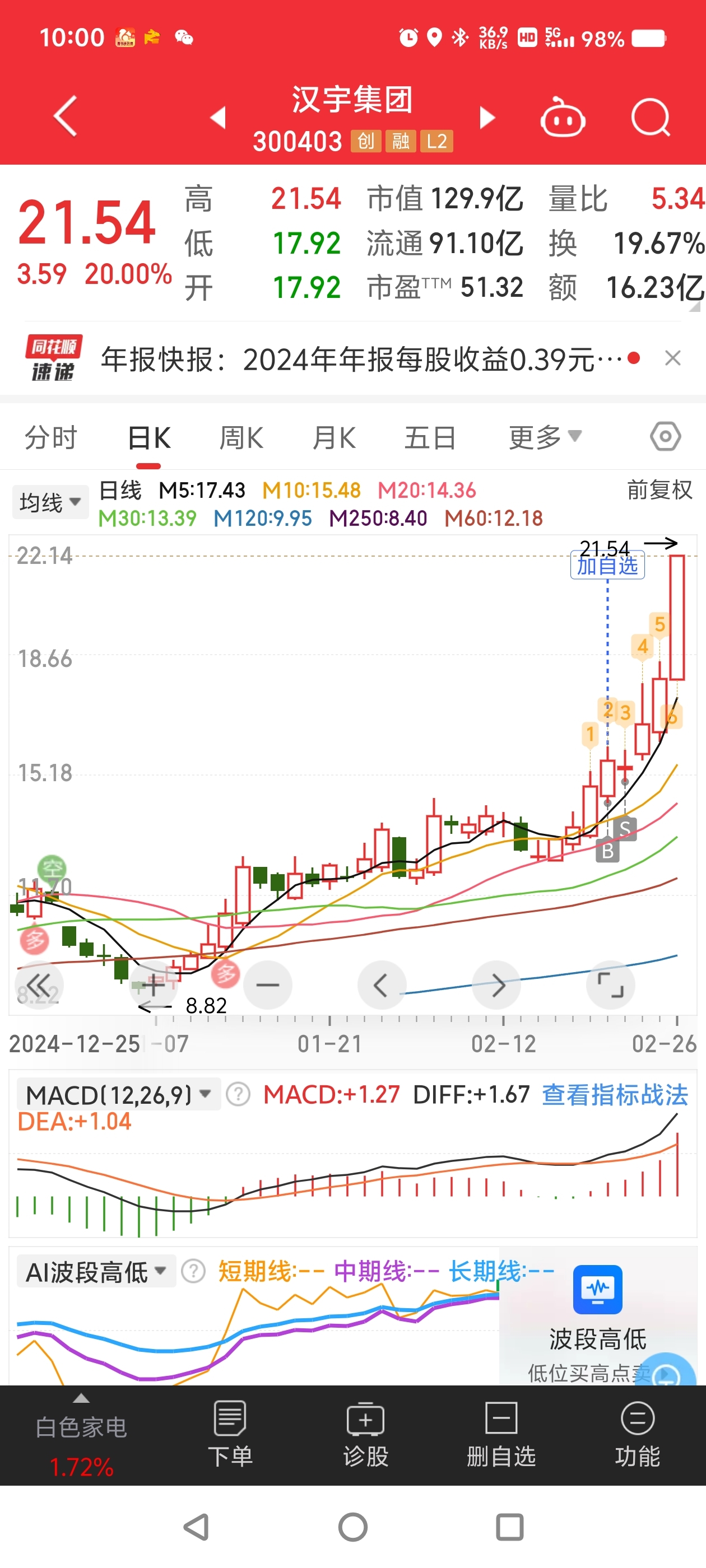 $汉宇集团(SZ300403)$ 欲哭无泪啊,卖飞了天天涨