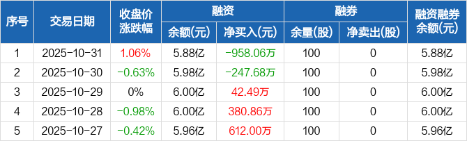 汉宇集团:融资净偿还958.06万元,融资余额5.88亿元(10-31)