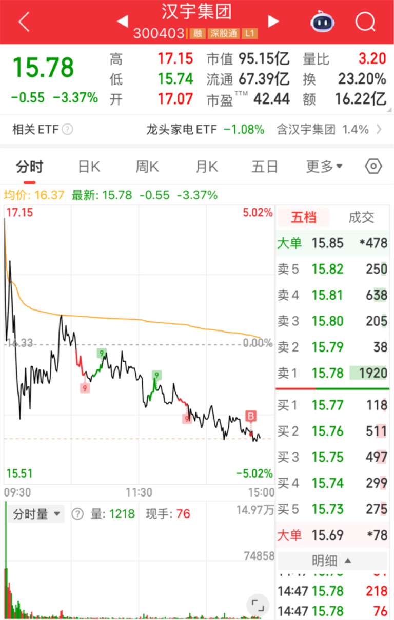 $汉宇集团(SZ300403)$ 捞了一点货,周一再看了