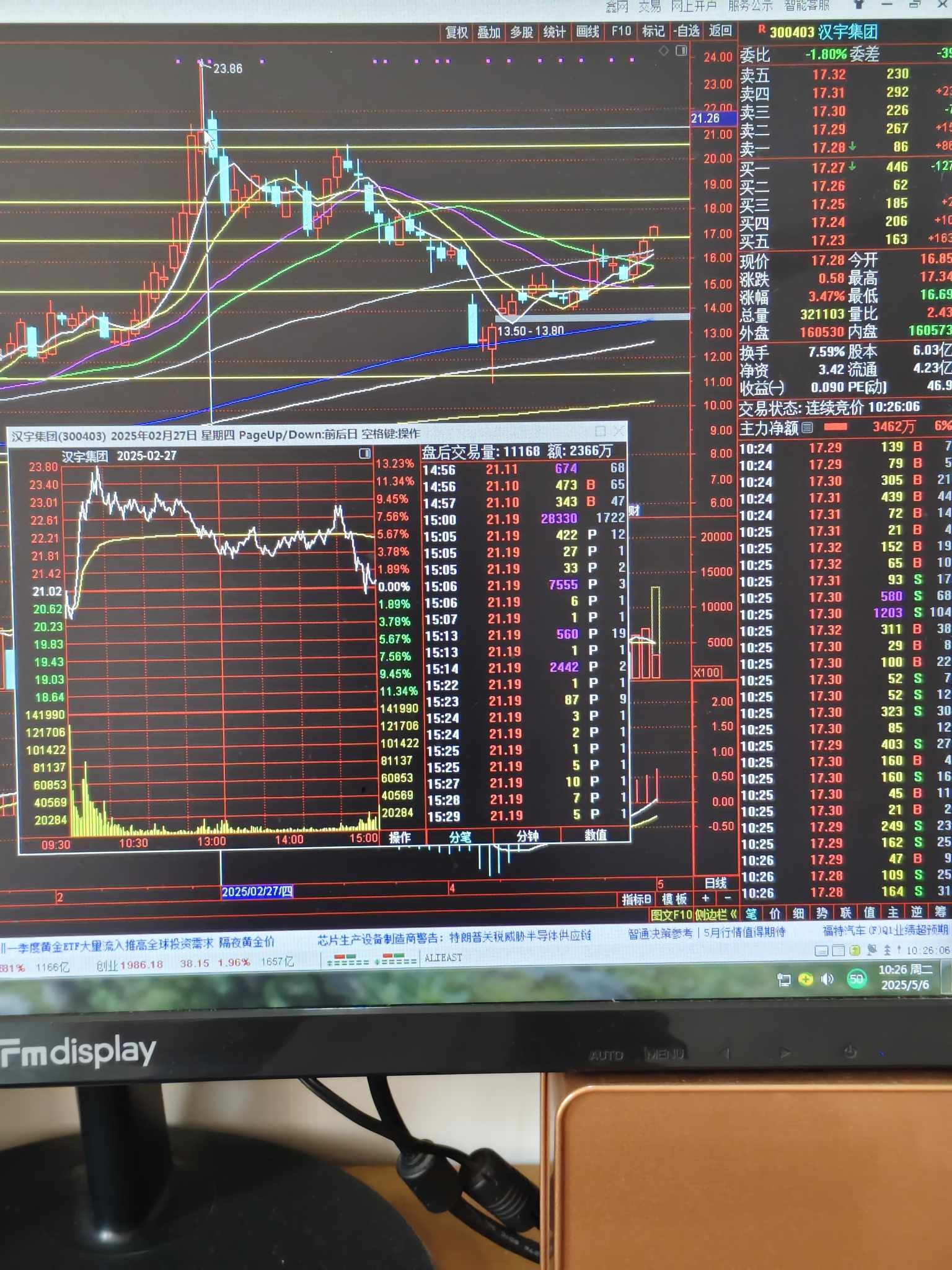上周五卖的双林,尾买一笔汉宇,今天亏-1元,只有一日游,长阳不走你又上套,换来换