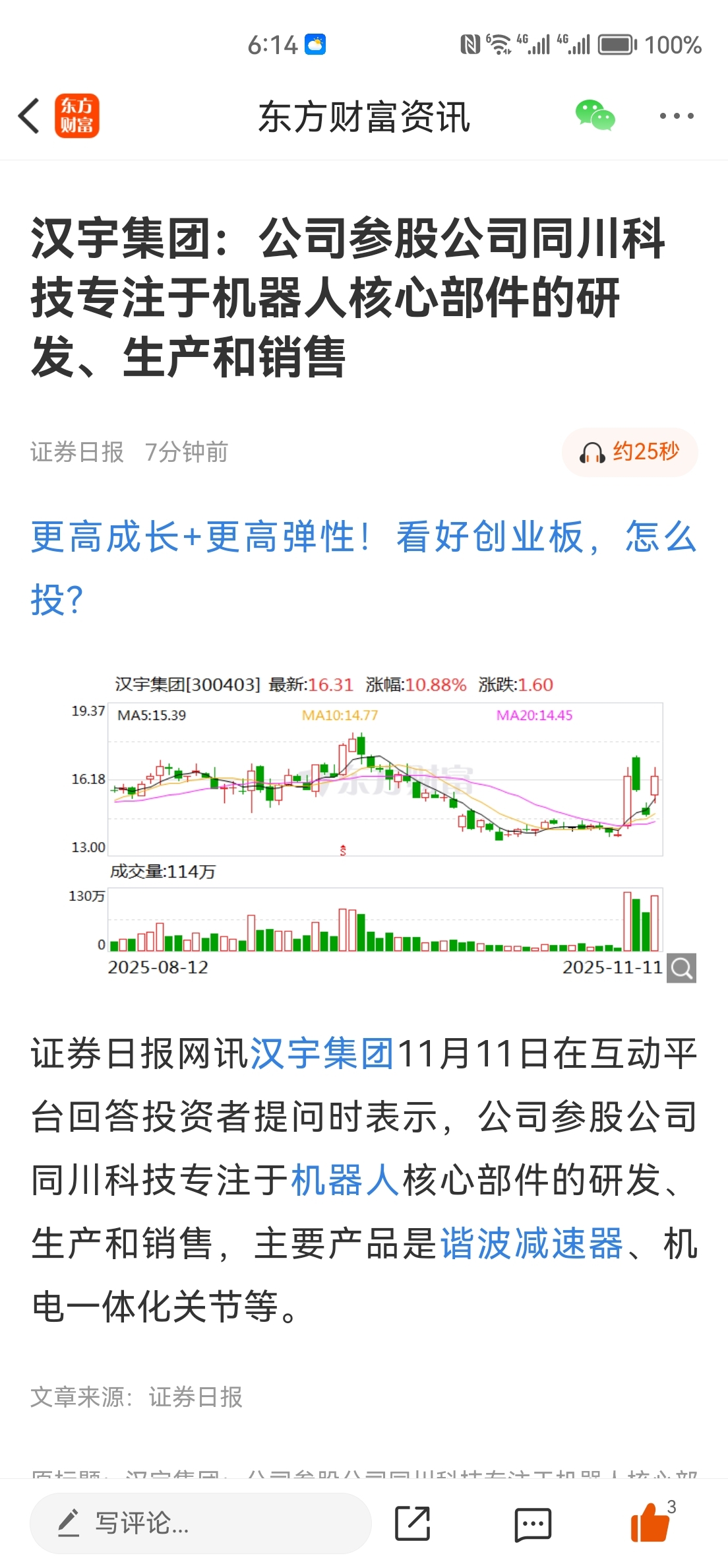 $汉宇集团(SZ300403)$ 汉宇集团控股公司,同川科技提供小鹏机器人,谐波减速器和关节!这不妥妥的起飞了吗?谁拿住了?让我看看!这两天把咱们散户洗秃噜皮了!$方正电机(SZ002196)$ $三花智控(SZ002050)$