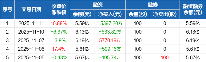 汉宇集团:融资净偿还5397.2万元,融资余额5.59亿元(11-11)