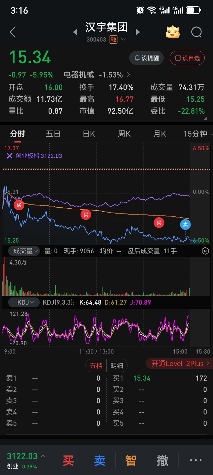 $汉宇集团(SZ300403)$ 本想做T降下成本,奈何越做越高!