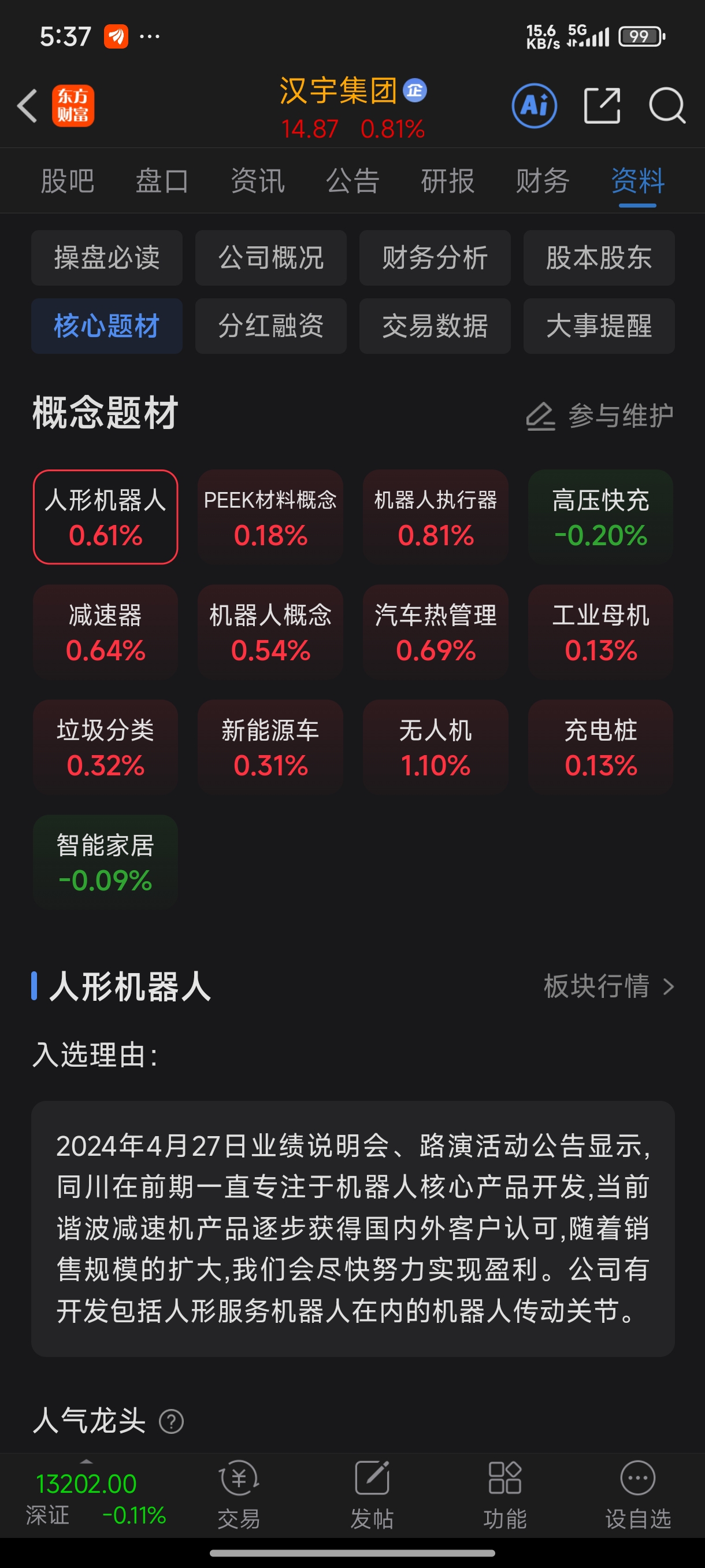 $汉宇集团(SZ300403)$ 质地优秀的机器人核心传动系统!向横河精密的价格靠近!未来可期!同川科技如上市股价在百充以上!汉宇做为第一大股东尽可享受!