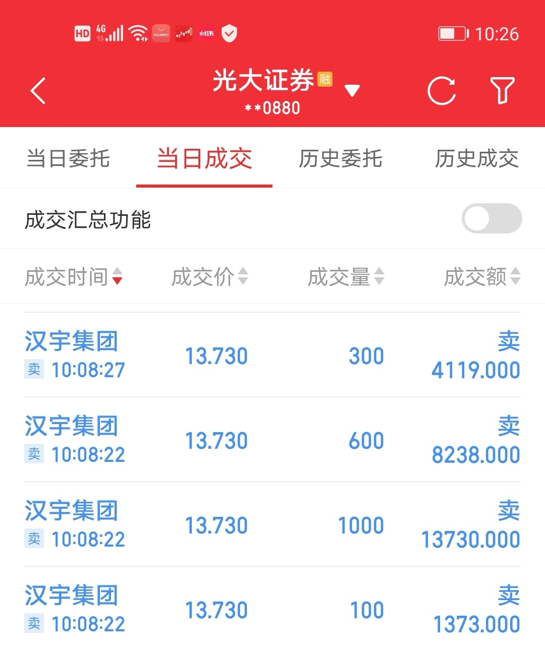 $汉宇集团(SZ300403)$ 上周五买的,今天出掉,赚点菜钱。