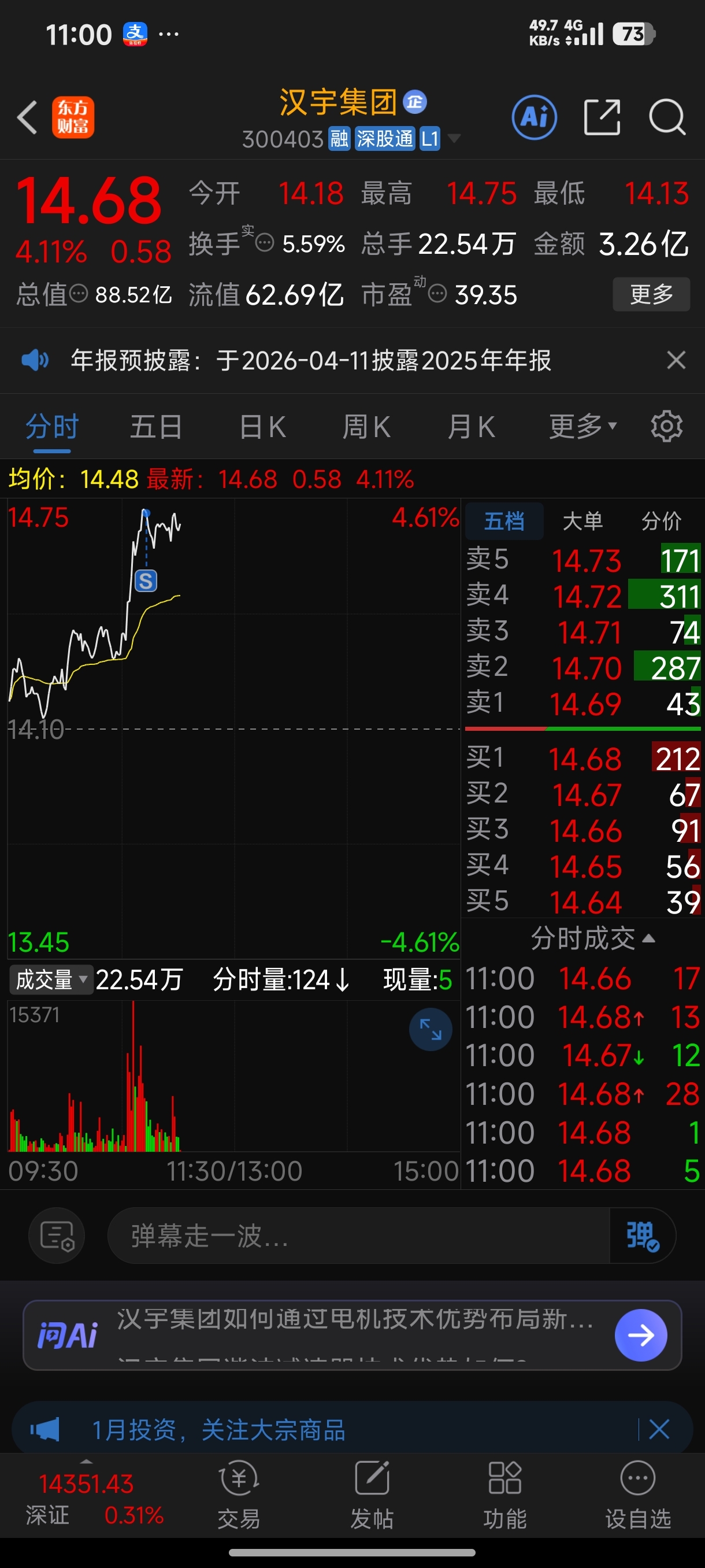 $汉宇集团(SZ300403)$ 还是垃圾股!走了!笨庄!吃史都没有赶上热的