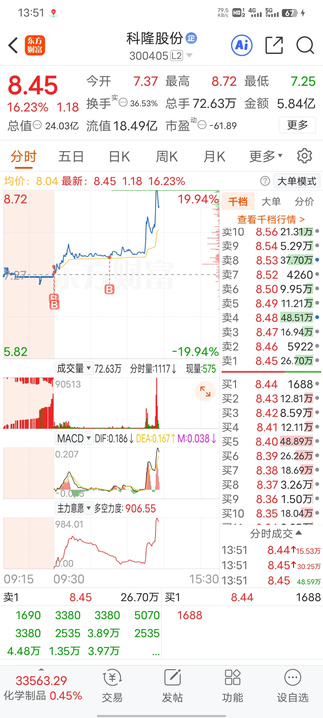 $科隆股份(SZ300405)$ 涨停走不掉,好着急啊。
