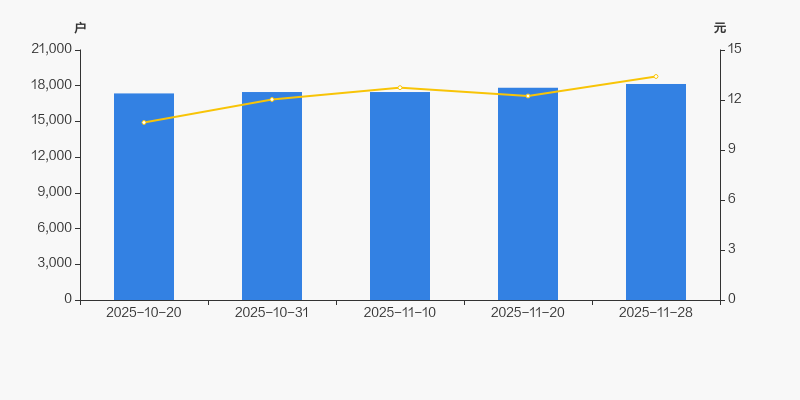 2025年10月20日至今,公司股东户数有所增长,区间涨幅为4.57%。2025年10月20日至2025年11月28日区间股价上涨25.92%。
