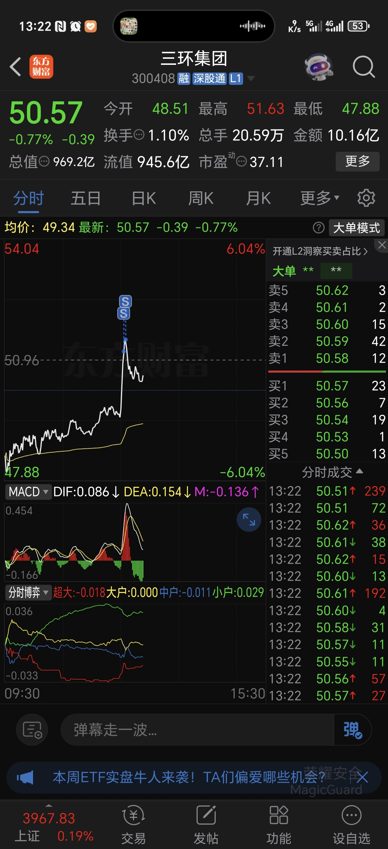 $三环集团(SZ300408)$ 出了6成,留了点底仓