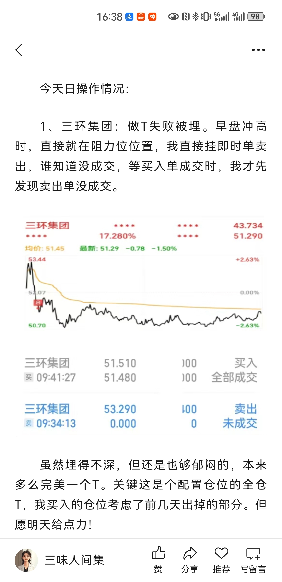 $三环集团(SZ300408)$ 这妹子有点牛,50建仓,现在43成本。