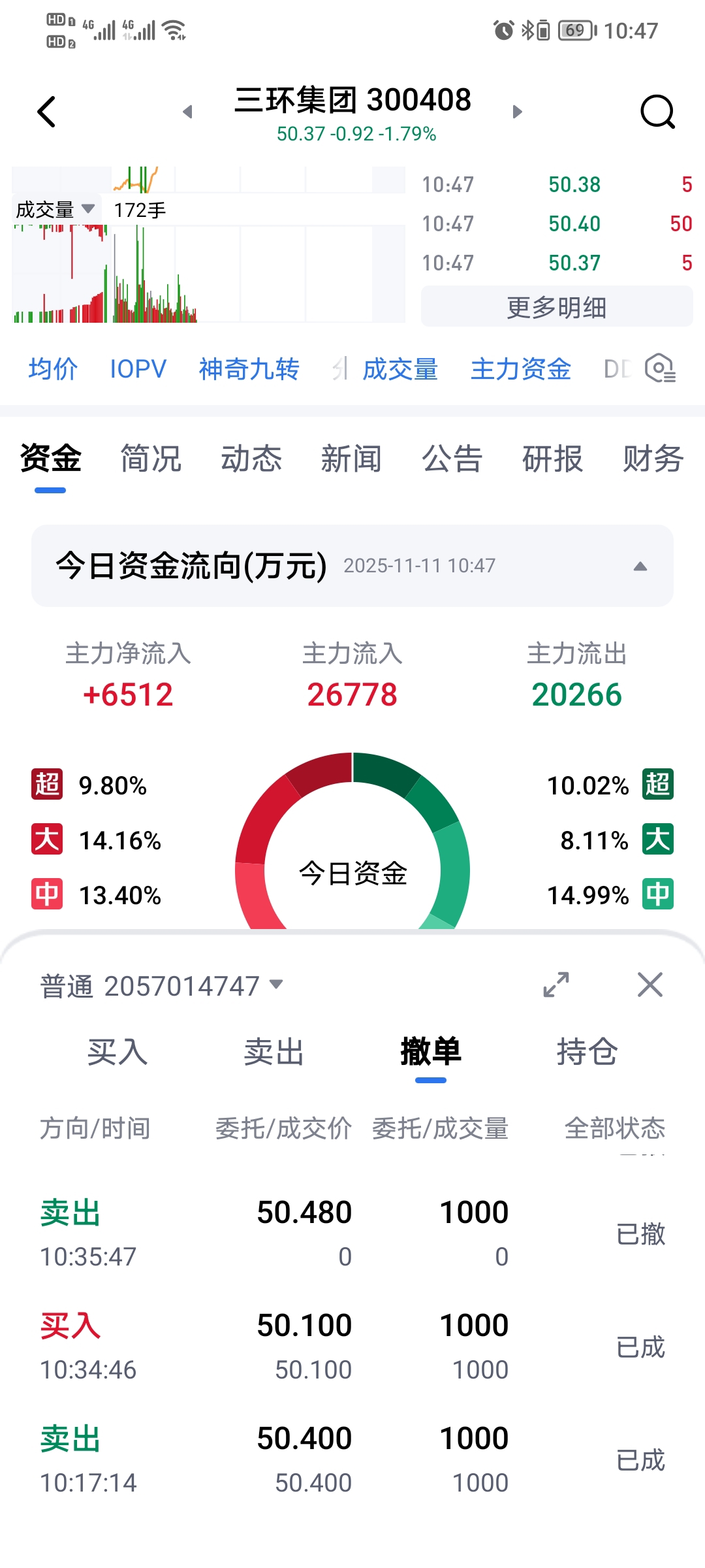$三环集团(SZ300408)$ 这个主力是会玩的光吃筹码不涨还跌,盘子是洗了又洗不断做T,再这样下去抖音忽悠进来的人也全部洗走了,厉害的金主跟着你发财,下午能不能拉一下或者明天也该拉了,已经连续三天下跌了