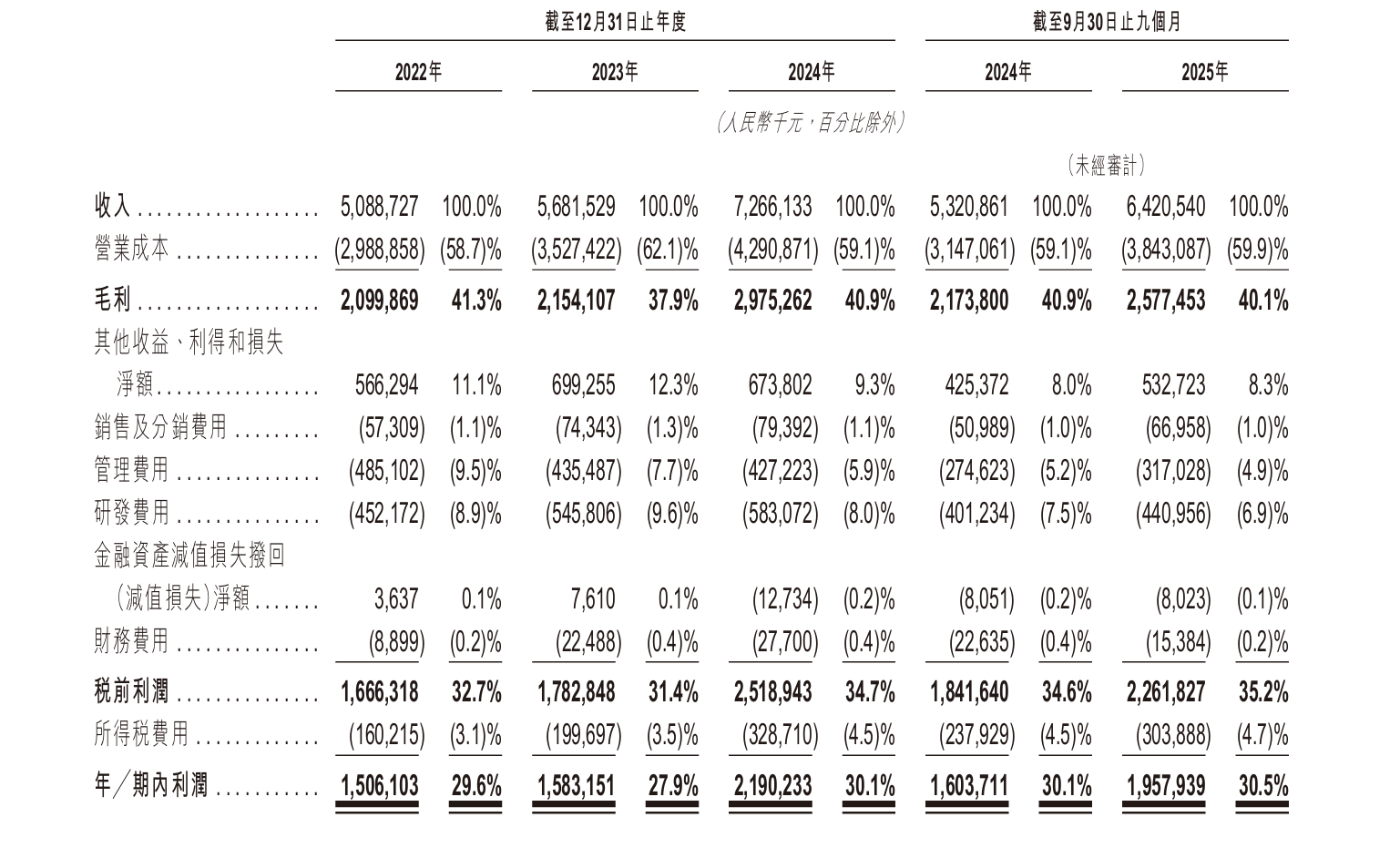 业绩方面,招股书显示,三环集团报告期(2022年至2024年度、2025年前三季度)分别实现营收约50.89亿元、56.82亿元、72.66亿元、64.21亿元,期内利润分别约为15.06亿元、15.83亿元、21.9亿元、19.58亿元。