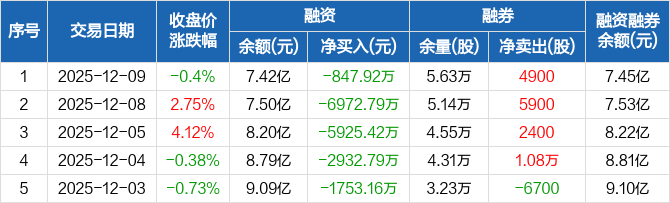 三环集团:连续5日融资净偿还累计1.84亿元(12-09)