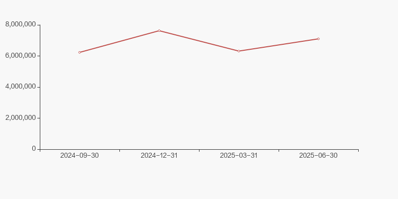 截至2025年9月30日,公司最新总股本为7.82亿股,其中流通股本为6.87亿股。户均持有流通股数量由上期的9274股下降至8137股,户均流通市值20.67万元。
