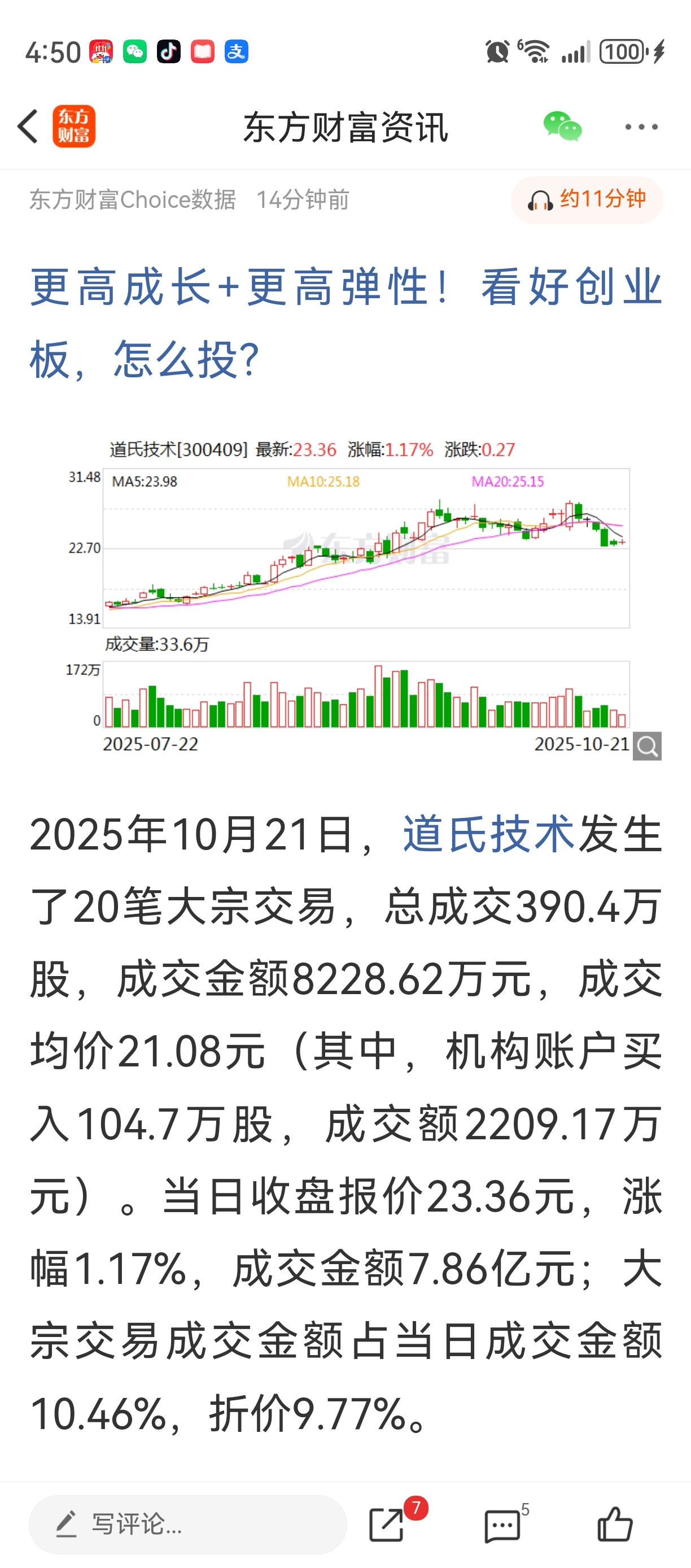 $道氏技术(SZ300409)$ 想啥来啥呀?股东通过大宗21块多减持,正好触及到60日线,如此看来,明天就能见到。如果真能破60日线,是时候收集筹码了。