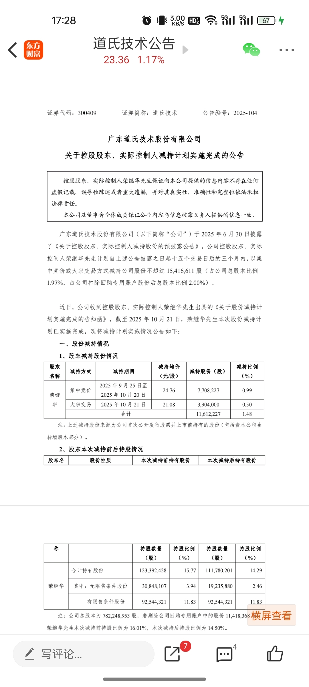 $道氏技术(SZ300409)$ 最后一天还是减持了,还是打折出售