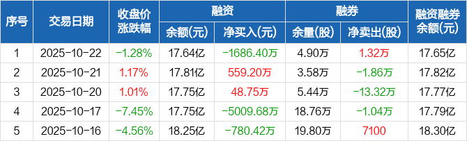 道氏技术:融资净偿还1686.4万元,融资余额17.64亿元(10-22)