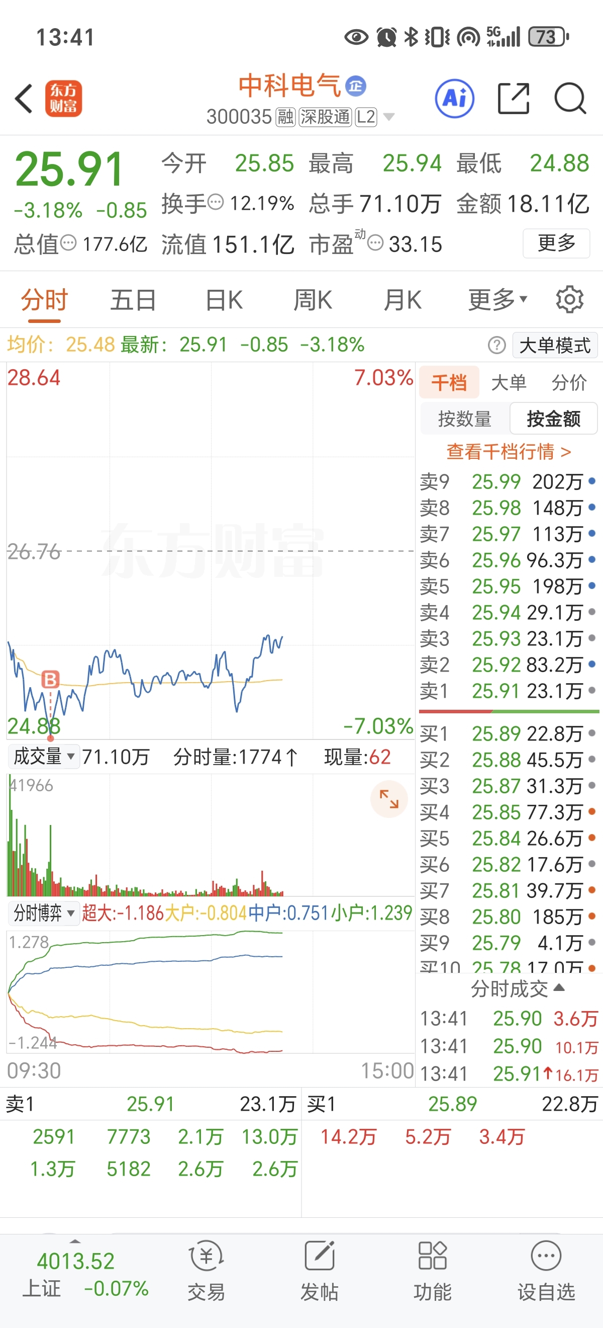 $道氏技术(SZ300409)$ 最低点成交,相信中科电气的韧性