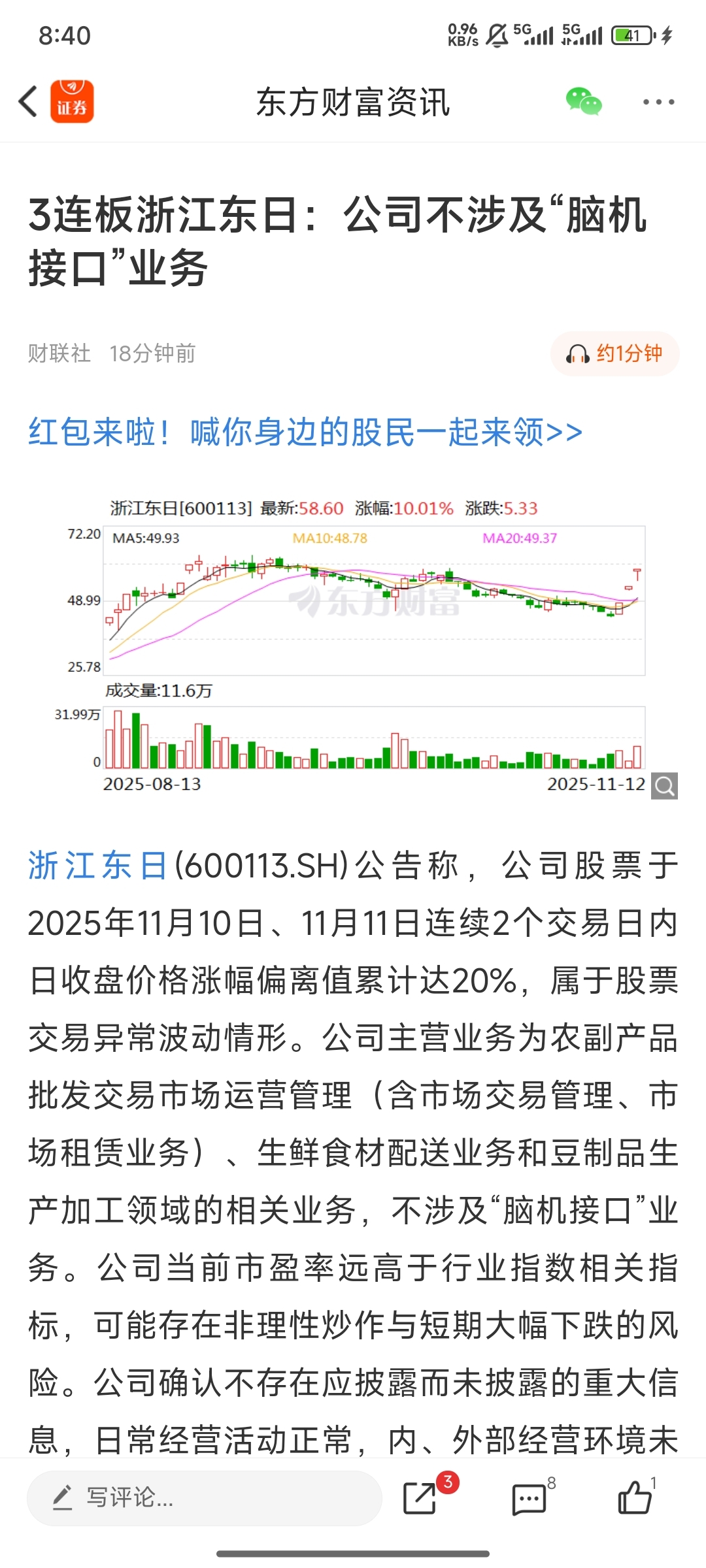 没有脑机接口的浙江东日三连板,投资的脑强科技的道氏技术三连阴,这市场简直不要太离