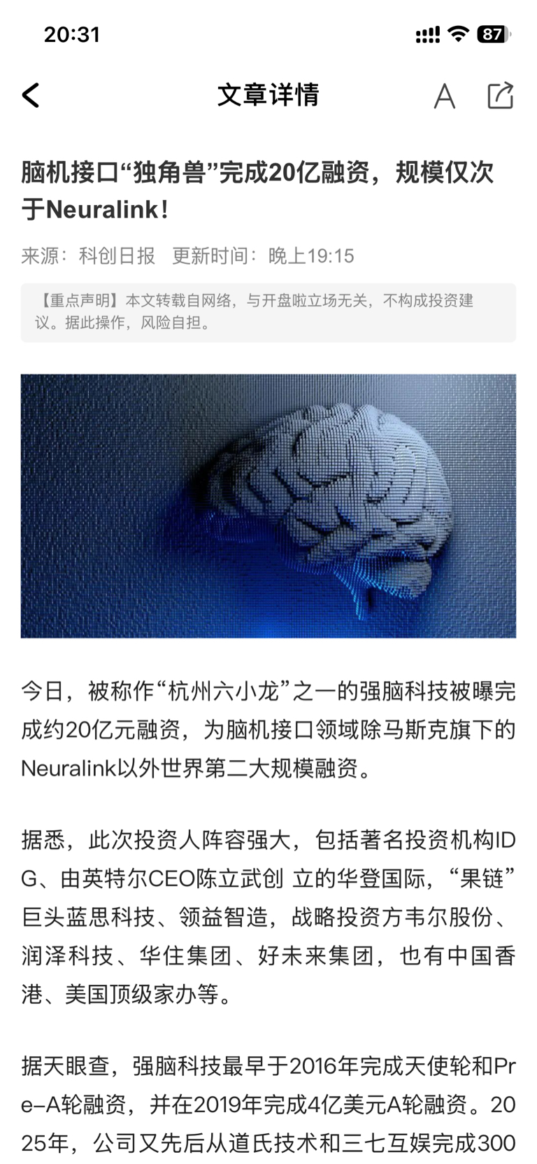 $道氏技术(SZ300409)$ 道氏技术已投资强脑,双方并有脑机接口业务合作