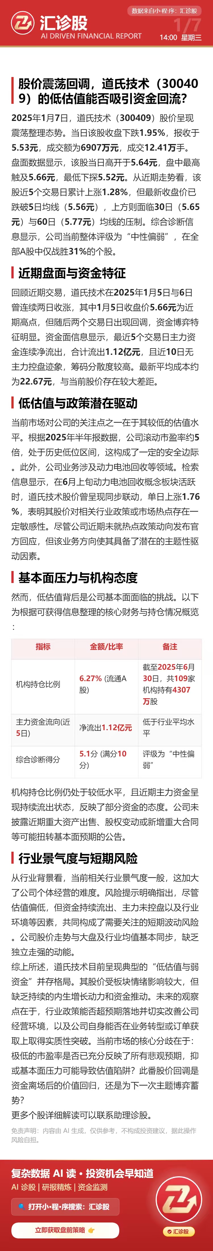 股价震荡回调,道氏技术的低估值能否吸引资金回流?