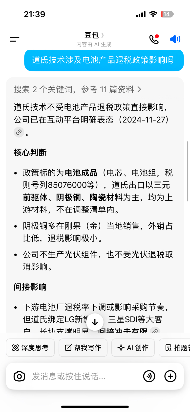 道氏的产品不受退税政策影响的