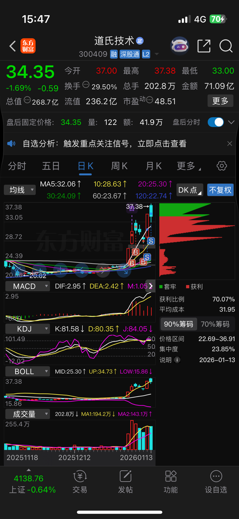 $道氏技术(SZ300409)$ 走了 ,23个点