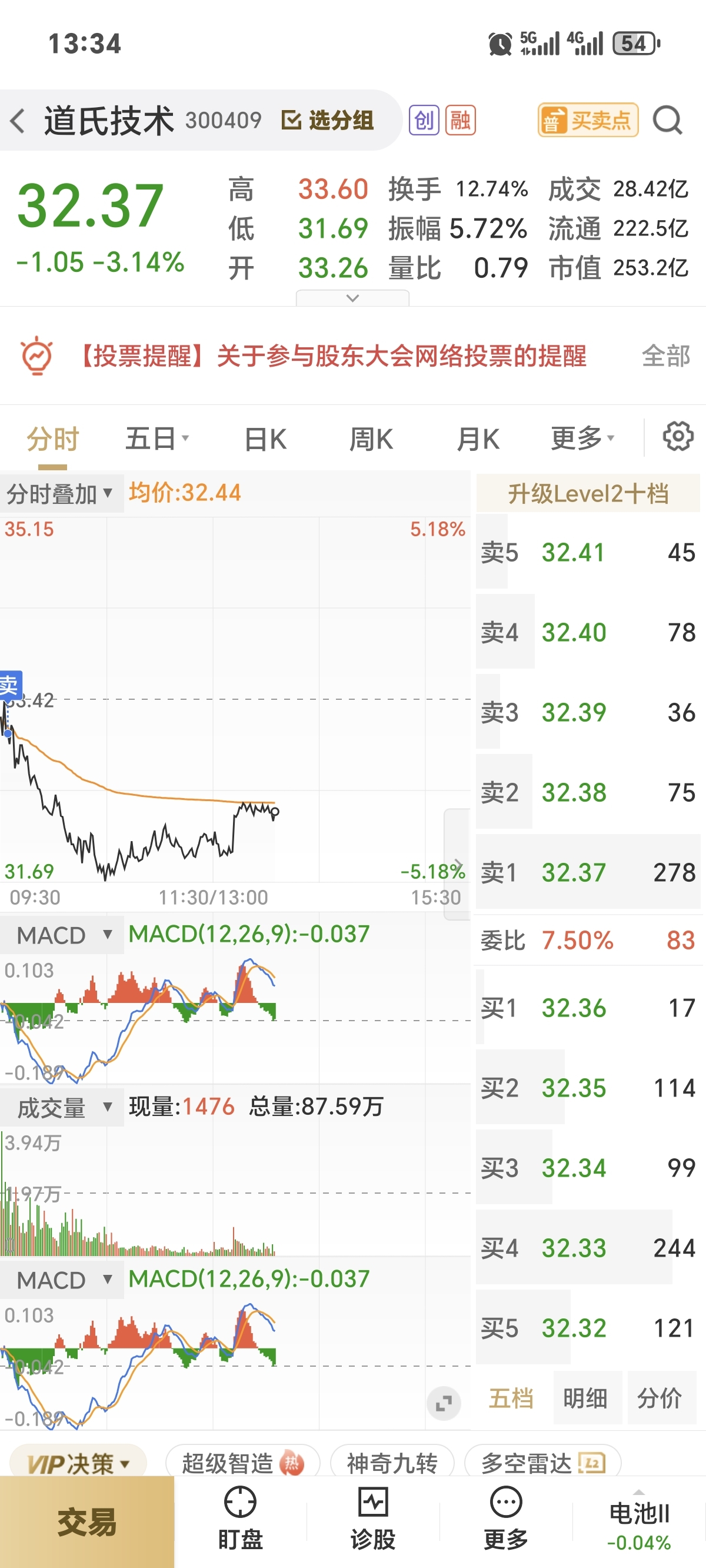 一觉醒来,发现道氏这家伙还不能上均价线,早上一开盘不久我就觉得不对所以减了一半,