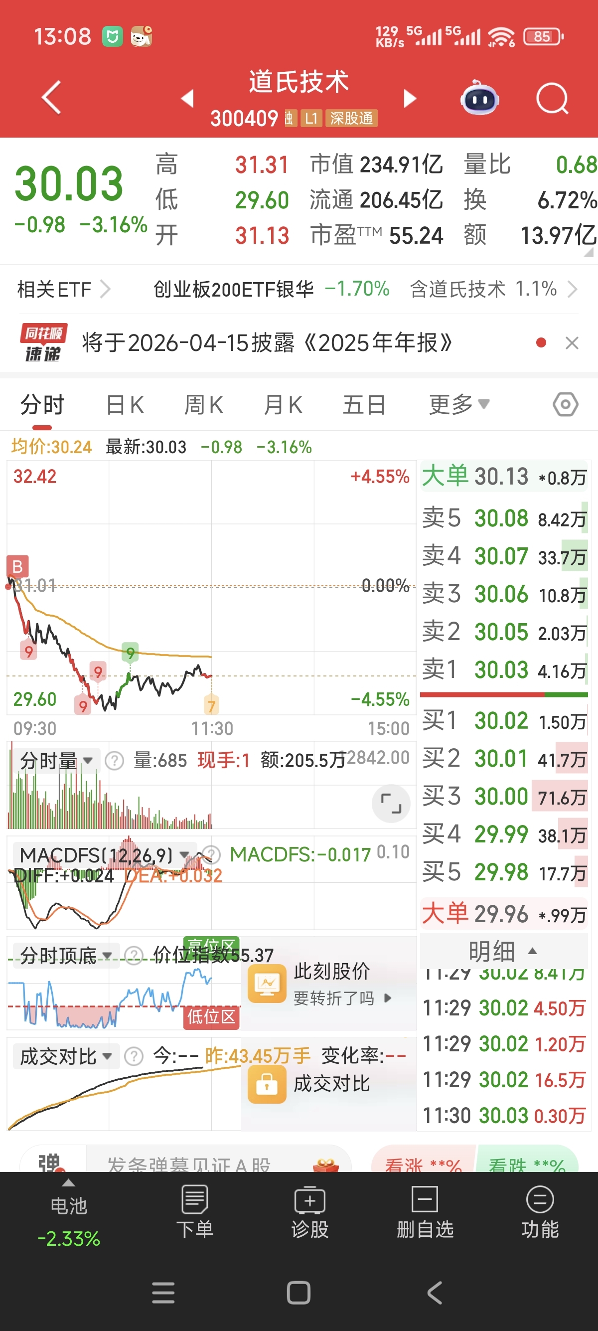 $道氏技术(SZ300409)$ 开盘买的