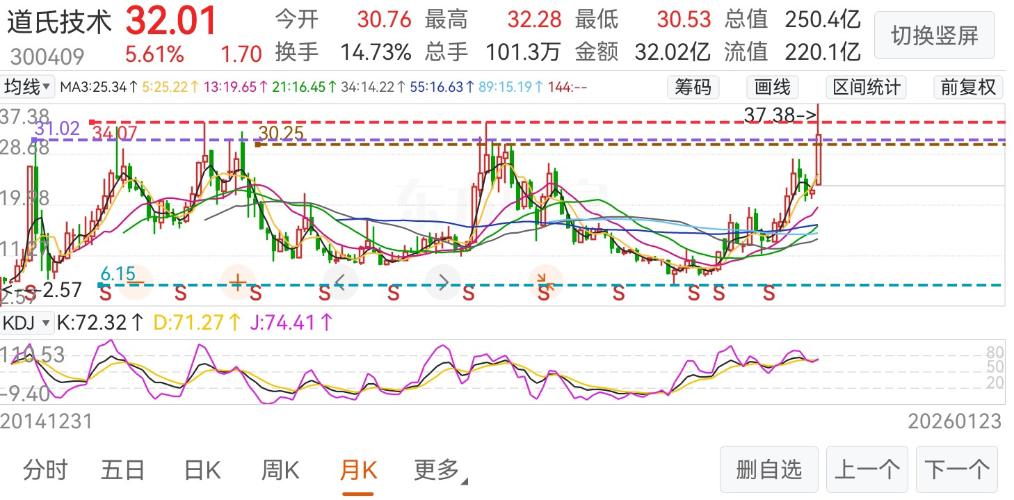 周K大跨度(三重底)W形态 //@禅悟与股市 :道氏也属太空算力AⅠ芯片TPU及钠离子固态电池太空储能及电池材料(碳纳米管电极)…AI+电池材料+脑机+铜+钴…附算力芯片个股…