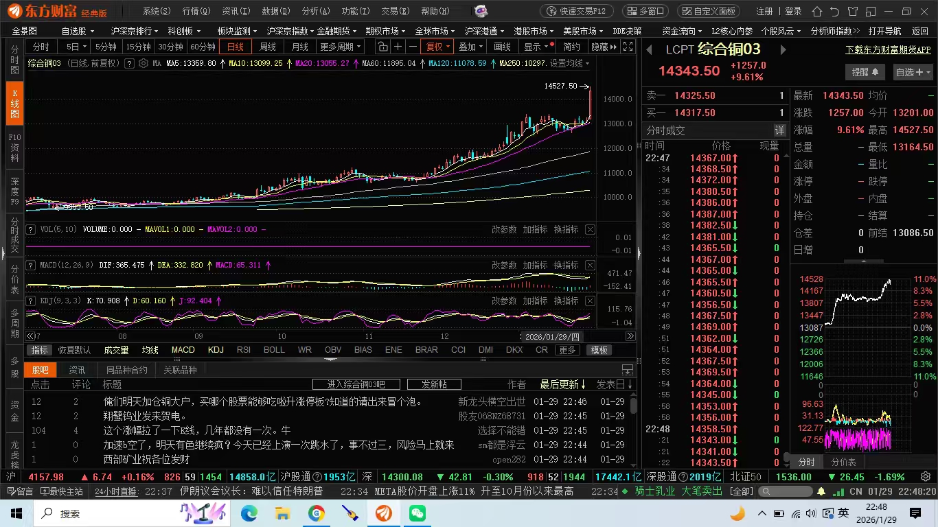 26年1月29日夜国际铜期货暴涨-道氏25年的7.5万吨阴极铜,26年10.5万