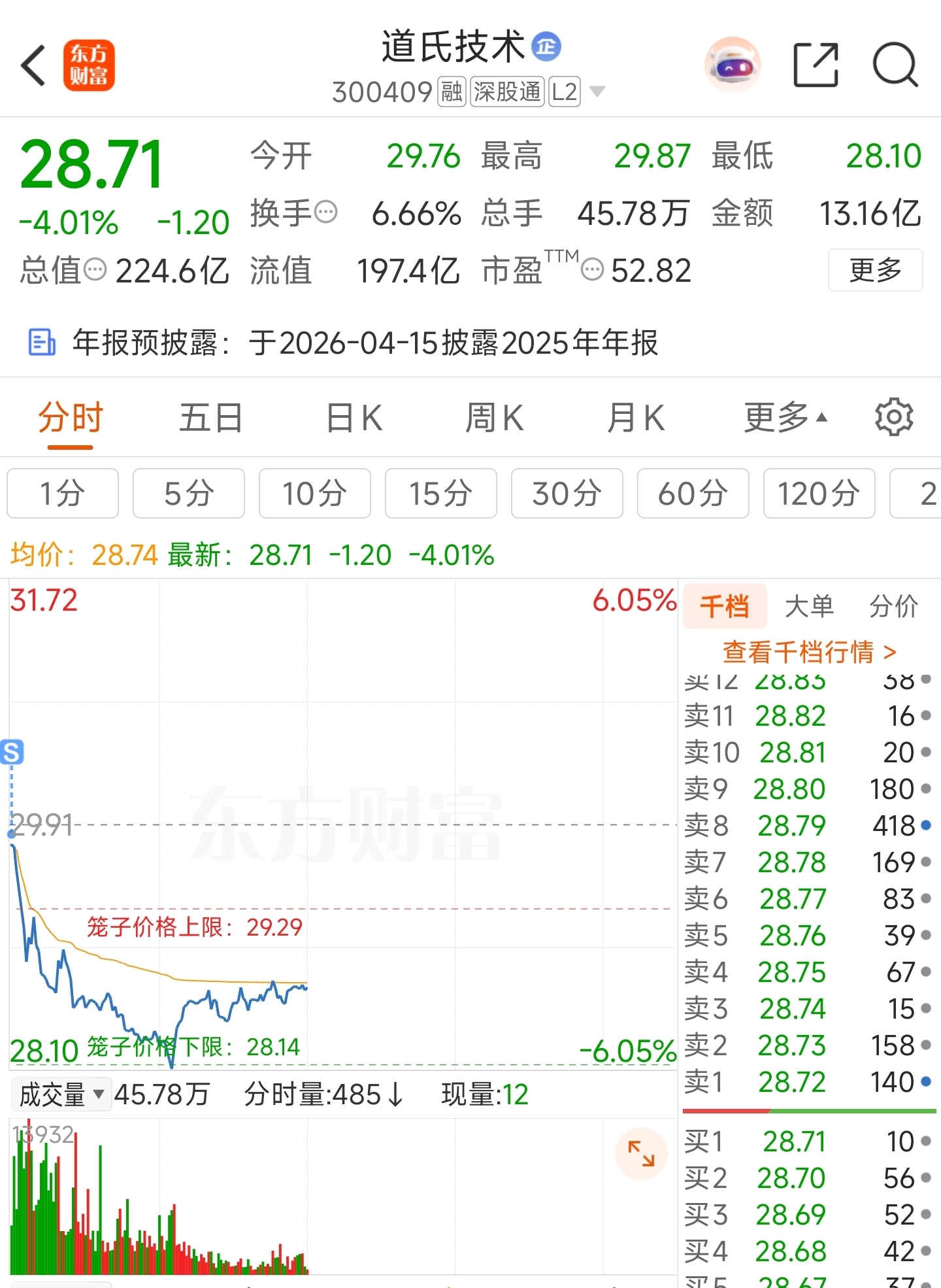 $道氏技术(SZ300409)$ 昨天做T成功,今天开盘凌空卖光了,也不知道哪个接了。 后面啥时候啥位置买回来呢,在思考……