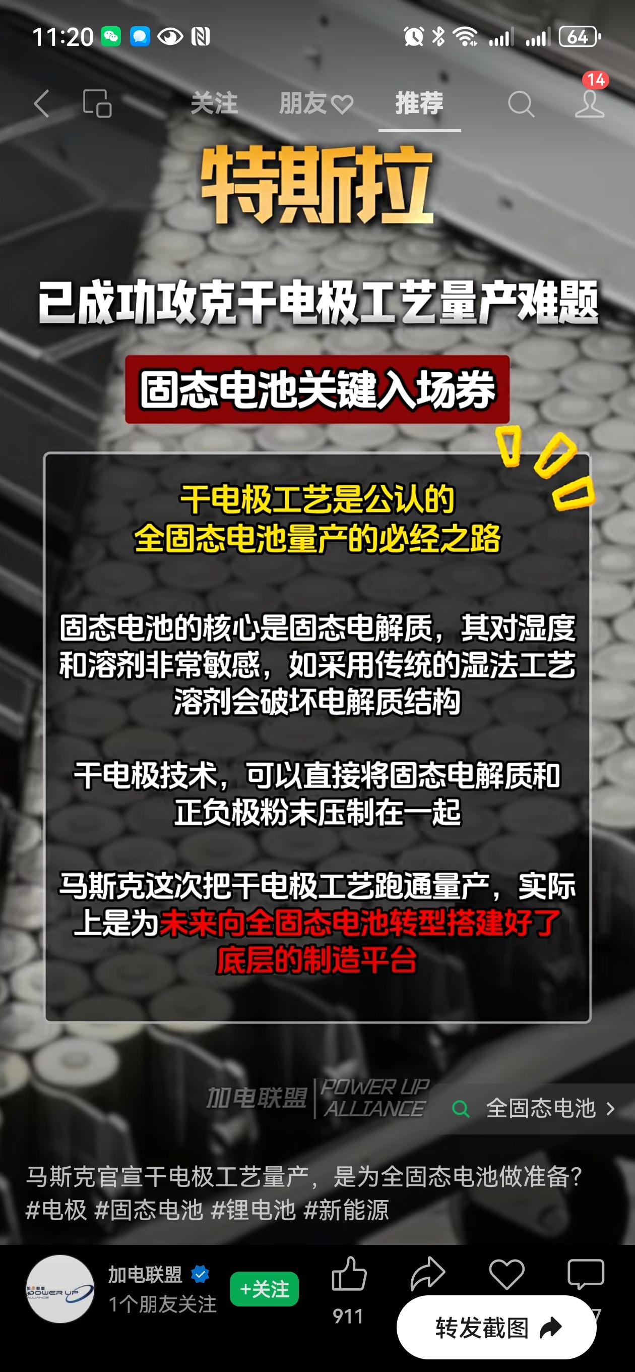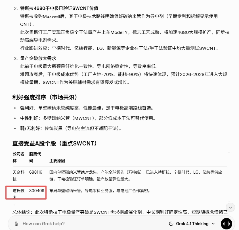 马斯克高调官宣:已经攻克干电极工艺量产难题~搜了一下grok,gemini,gp