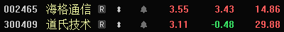道氏技术:月K今天能收红吗?目前月涨幅-0.4%左右!股价距离29.35还差8分钱左右!海格通信月涨幅已达3%多!