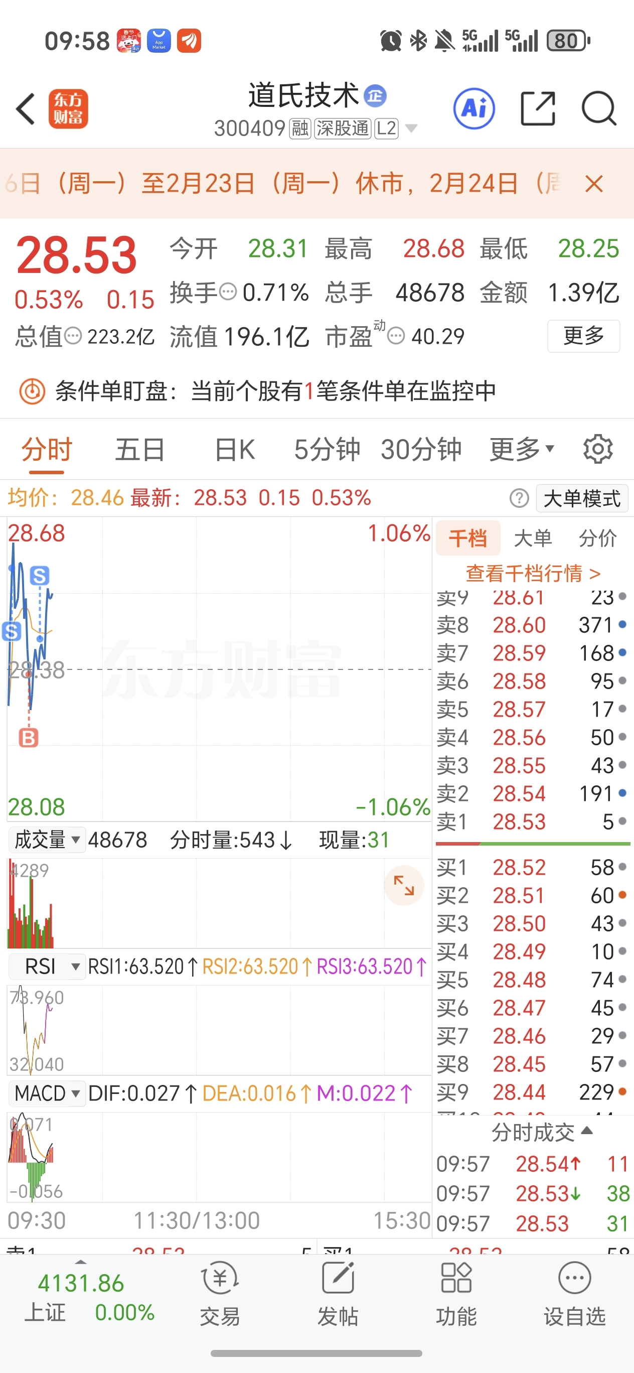 $道氏技术(SZ300409)$ 就这样吧,小仓位t猪脚饭,涨卖跌买