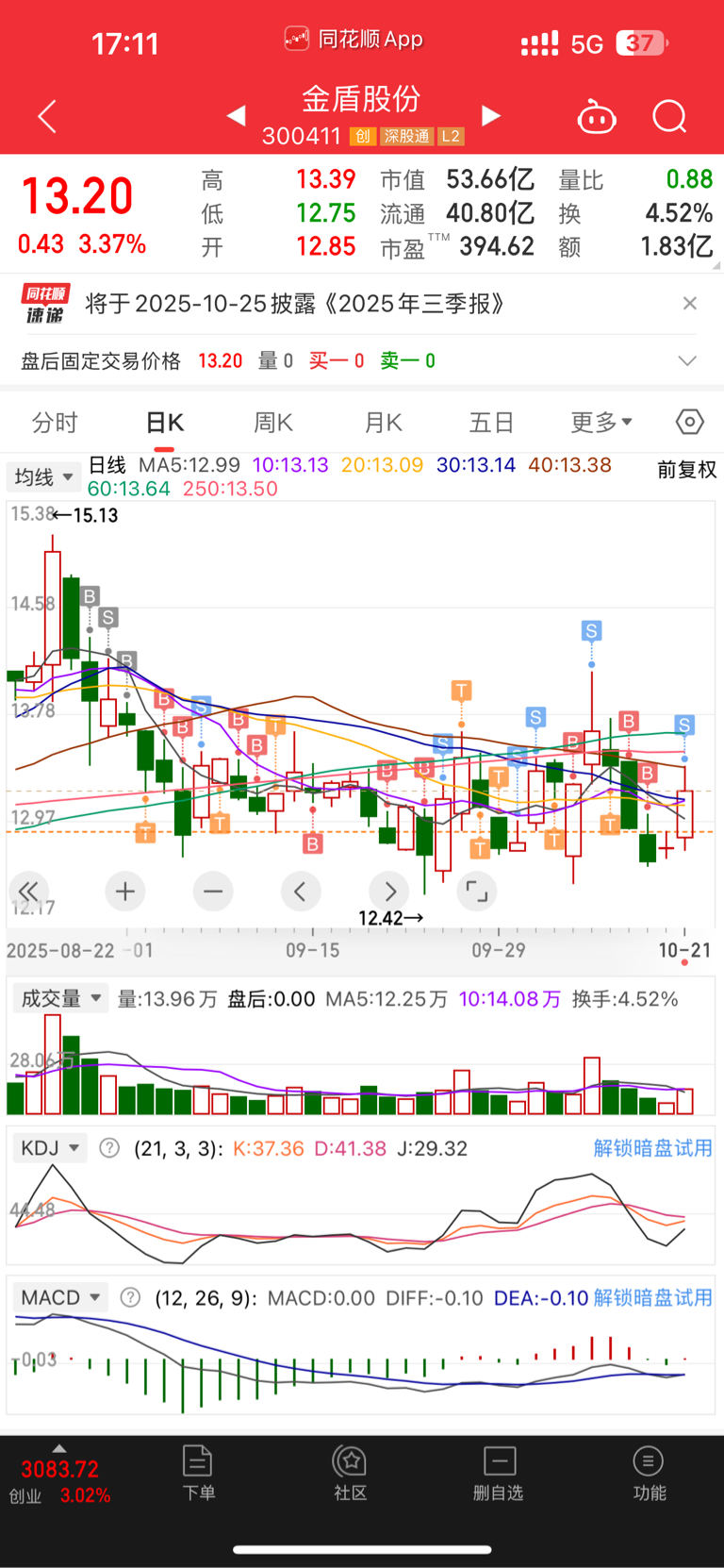 $金盾股份(SZ300411)$ 能不能明天拉个涨停啊