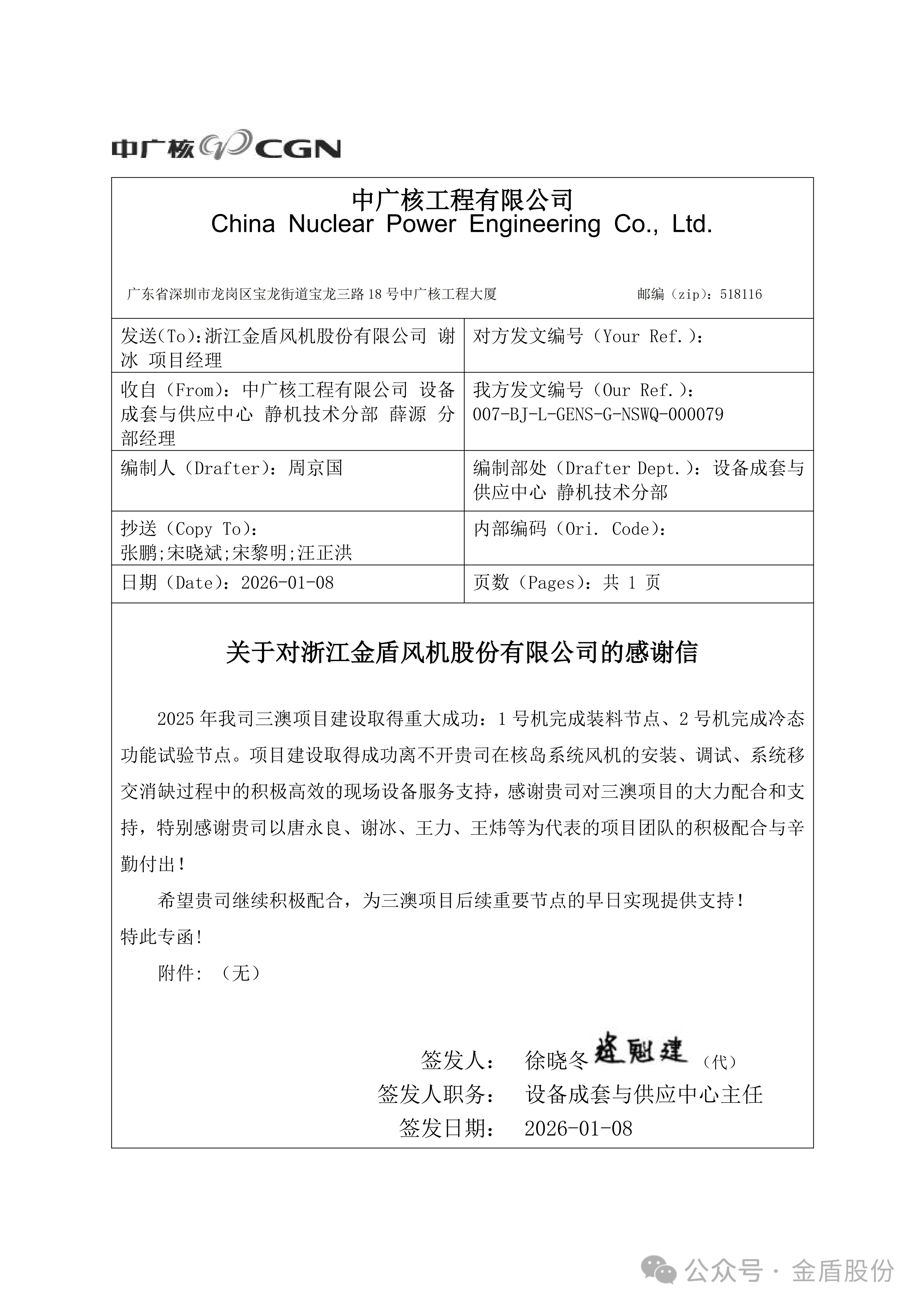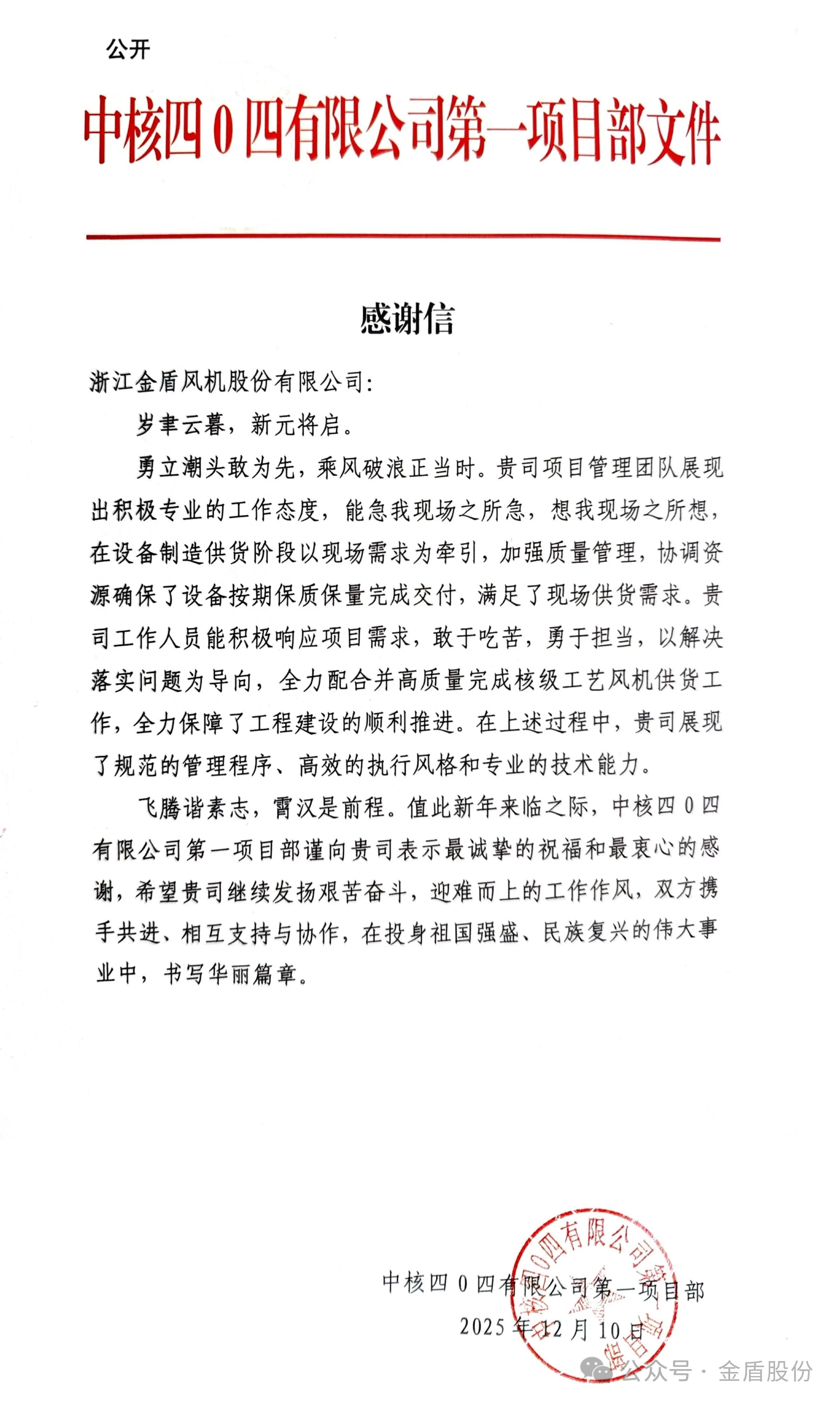 金盾股份核电业务再获客户认可