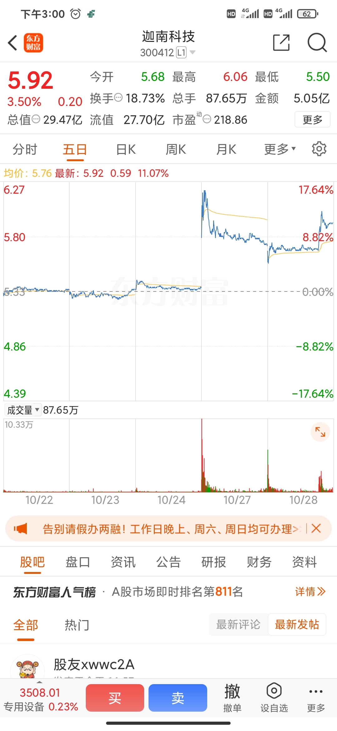 温馨提示: 1.根据《证券法》规定,禁止编造、传播虚假信息或者误导性信息,扰乱证券市场;2.用户在本社区发表的所有资料、言论等仅代表个人观点,与本网站立场无关,不对您构成任何投资建议。用户应基于自己的独立判断,自行决定证券投资并承担相应风险。《东方财富社区管理规定》