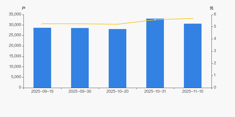 2025年9月19日至今,公司股东户数有所增长,区间涨幅为6.86%。2025年9月19日至2025年11月10日区间股价上涨8.38%。