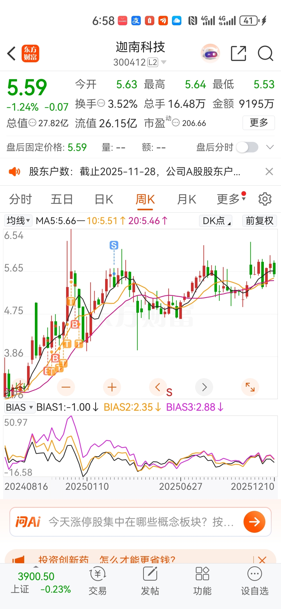 $迦南科技(SZ300412)$ 这玩意还是原地不动