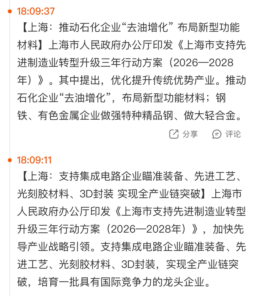 石化和光刻胶的利好,都出了