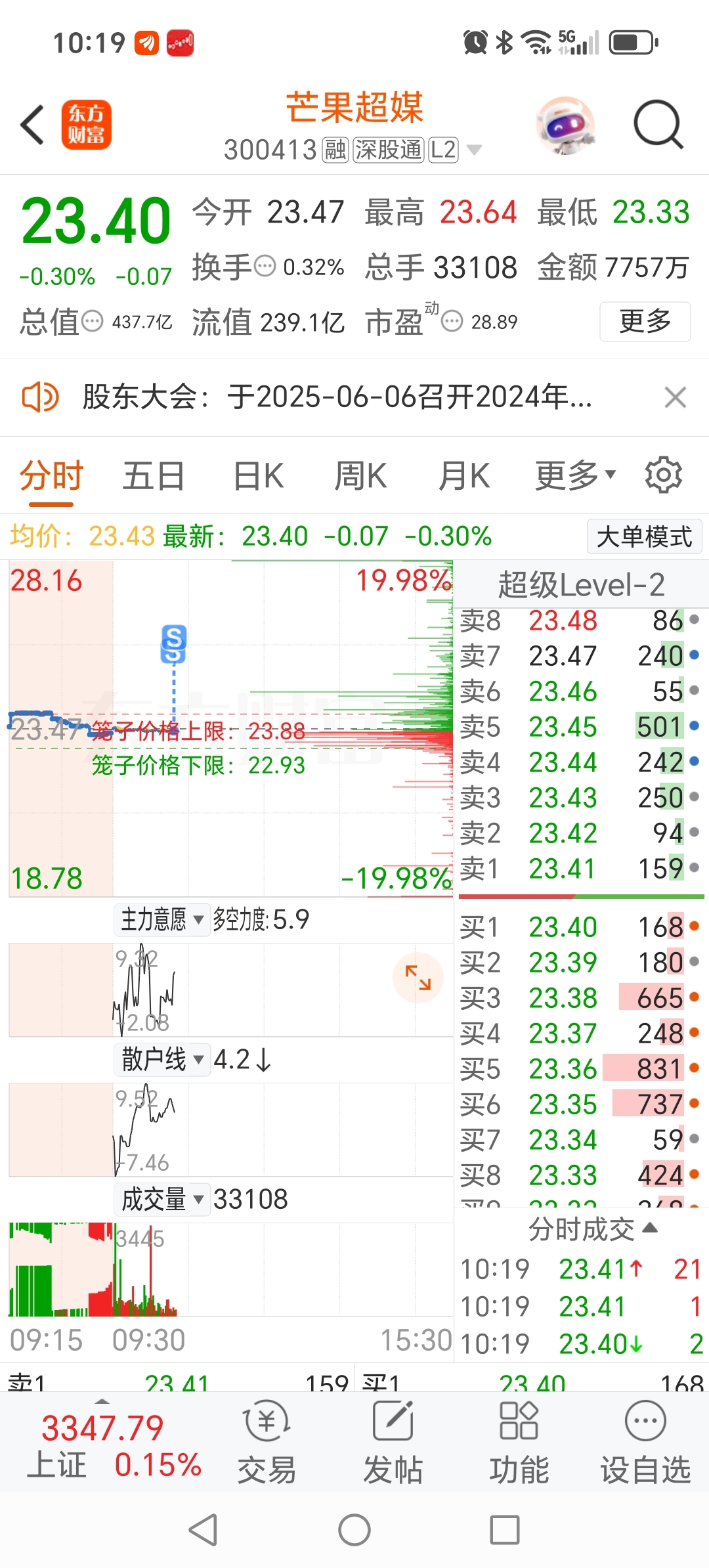$芒果超媒(SZ300413)$ 如果今天跌3个点,我将把昨天清仓的股数全部接回
